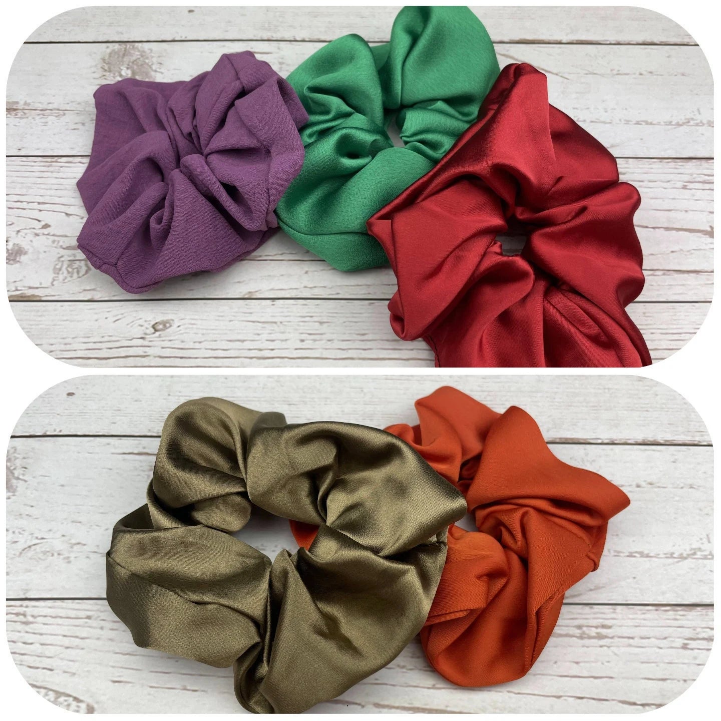 Handmade Satin Scrunchie with Bow - Colorful Pattern Hair Accessory in Green, Lilac, Red, Beige and Orange - Hair Ties and Scrunchies