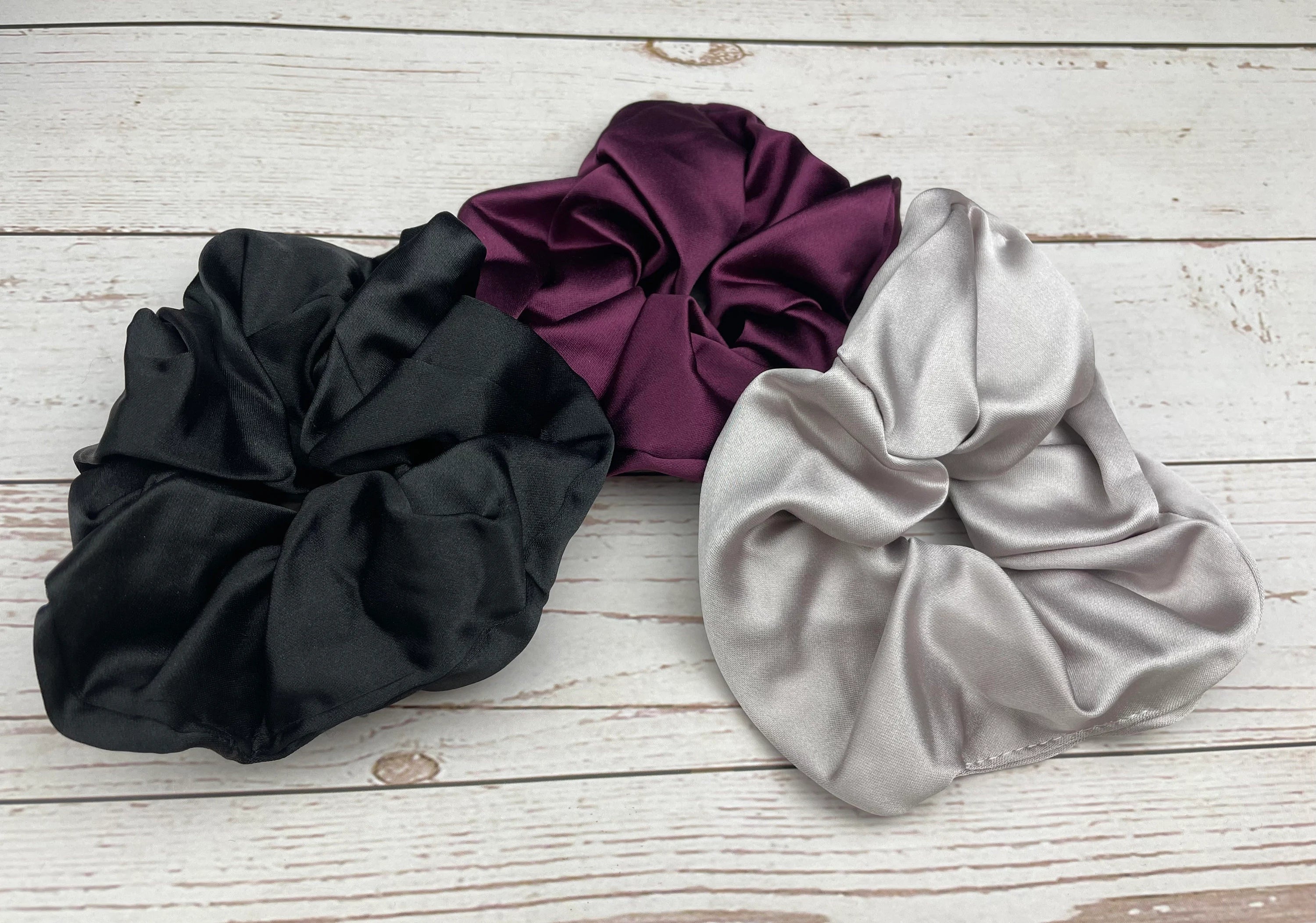 Handmade Satin Scrunchie with Bow, Colorful Scrunchie, Hair Accessory, Hair Ties, Black Beige Maroon Color Scrunchies, Satin Hairbow